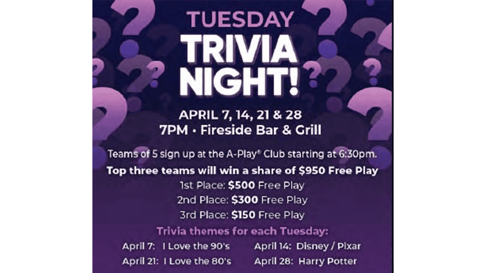 Join us for Tuesday Night Trivia at Fireside Grill on Tuesday, August 4, 2026, from 7 to 8 PM. Gather your team of up to five players and put your... View Article