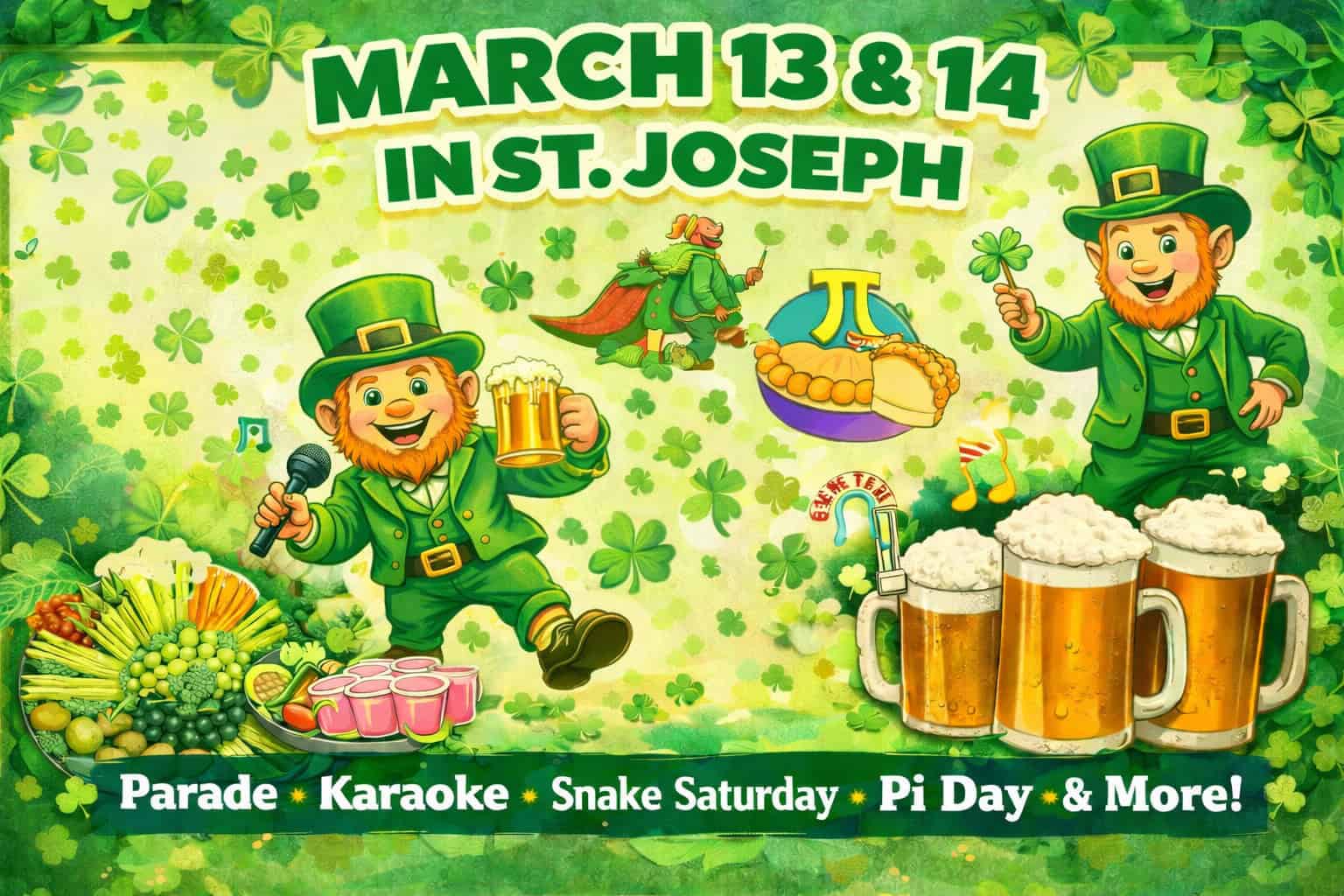 From Snake Saturday celebrations and downtown specials to brunches, karaoke, family activities, shopping, and the 40th Annual St. Patrick’s Day Parade, St. Joseph is going full green.