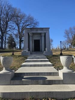 Most people, however, go for the sight seeking. The cemetery is an architectural treasure trove with unique mausoleums, beautiful marble statues, towering granite obelisks, and even rare 1840s limestone tombstones, which aren’t often seen West of the Mississippi. The architectural diversity and emphasis on beauty are intentional. When the cemetery was redesigned in 1872, it was done in lockstep with the Rural Garden Cemetery movement, which was popular at the time. This movement sought to clean up cemeteries and make them suitable for public gatherings and recreation, which was a precursor to modern parks. Although intensive restoration work is still ongoing in the older parts of the cemetery, the cemetery is still a beautiful place for long walks.