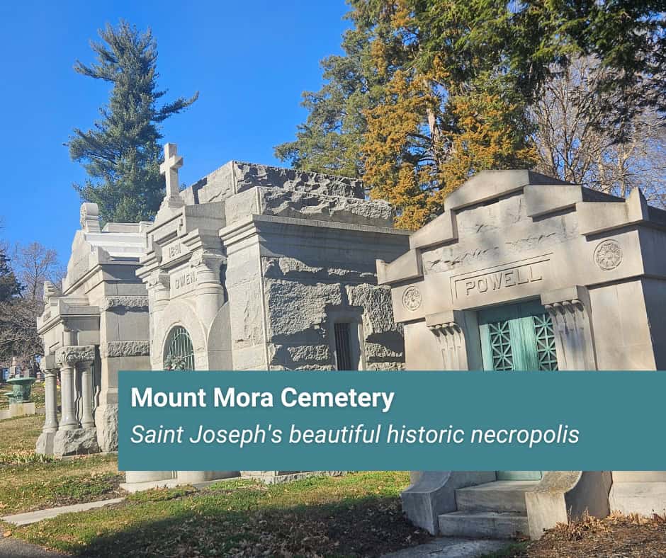 Every town has that one historic cemetery everyone grows up hearing stories about. In Saint Joseph’s case, we have too many to choose from. But by far our most famous historic cemetery is Mount Mora. Located on 824 Mount Mora Road, Mount Mora is the final resting place for some of our most notable residents. Established in 1851, Mount Mora is the burial ground for more than 15,000 burials. They say death is the great equalizer, and as far as cemeteries go, Mount Mora is a pretty even playing field; everyone from the poorest pauper to the richest magnate is buried here. Pioneers, farmers, inventors, theater vespians, writers, mayors, doctors, millionaires, industrialists, Civil War veterans, Pony Express riders, governors, soldiers of foreign armies, merchants, and architects are all buried here.