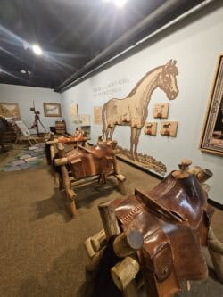 I spoke with the museum’s executive director, Cindy Daffron, who told me that the Pony Express museum was the only museum dedicated to all 2,000 miles of the Pony Express trail. Every Pony Express station is represented in detail, including facts about the food they served. The museum even has a replica relay station that visitors can walk through. The museum isn’t limited to the Pony Express either. Other notable subjects represented in the museum include the California Gold Rush and the Oregon Trail. The museum has a restored covered wagon and various items from the period of westward expansion.